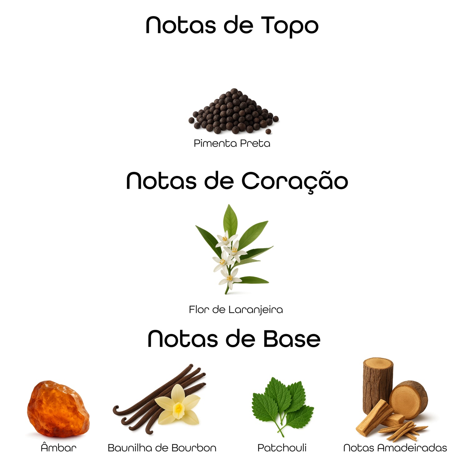 Essa composição cria uma fragrância aromática amadeirada moderna, com equilíbrio entre frescor, elegância e um leve toque adocicado.