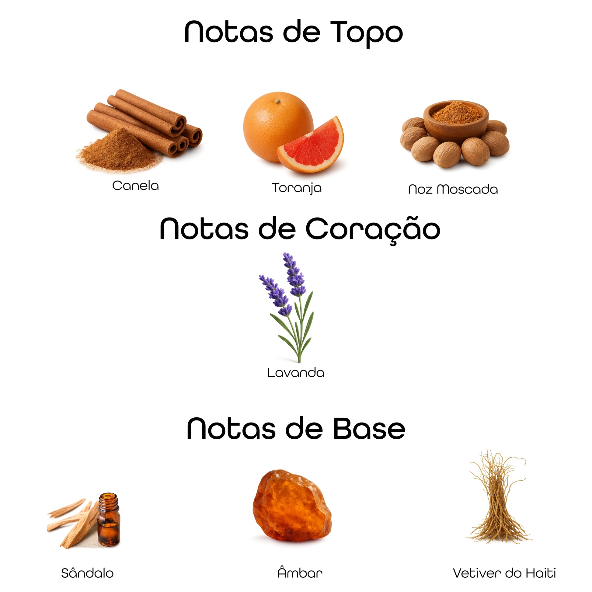 Especiarias intensas e madeiras nobres criam um rastro poderoso e elegante.
