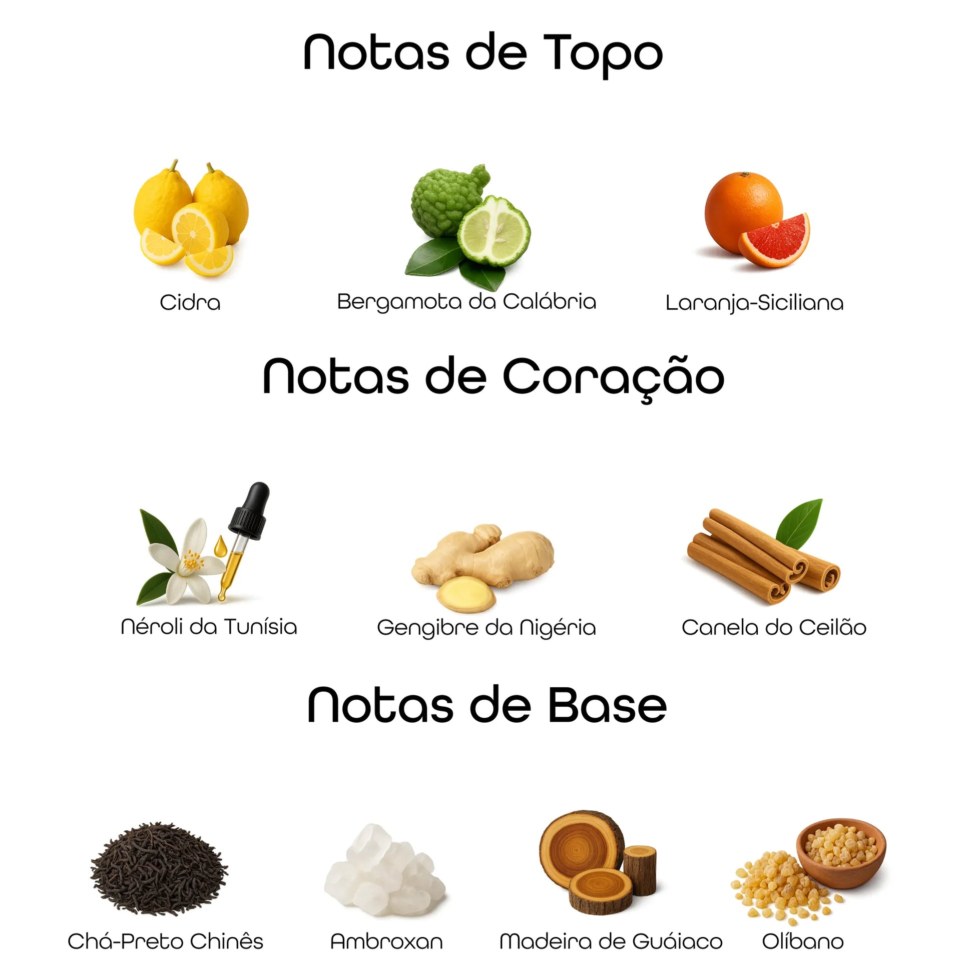 Criativo e sofisticado, combina chá preto, cítricos italianos e âmbar cinzento.